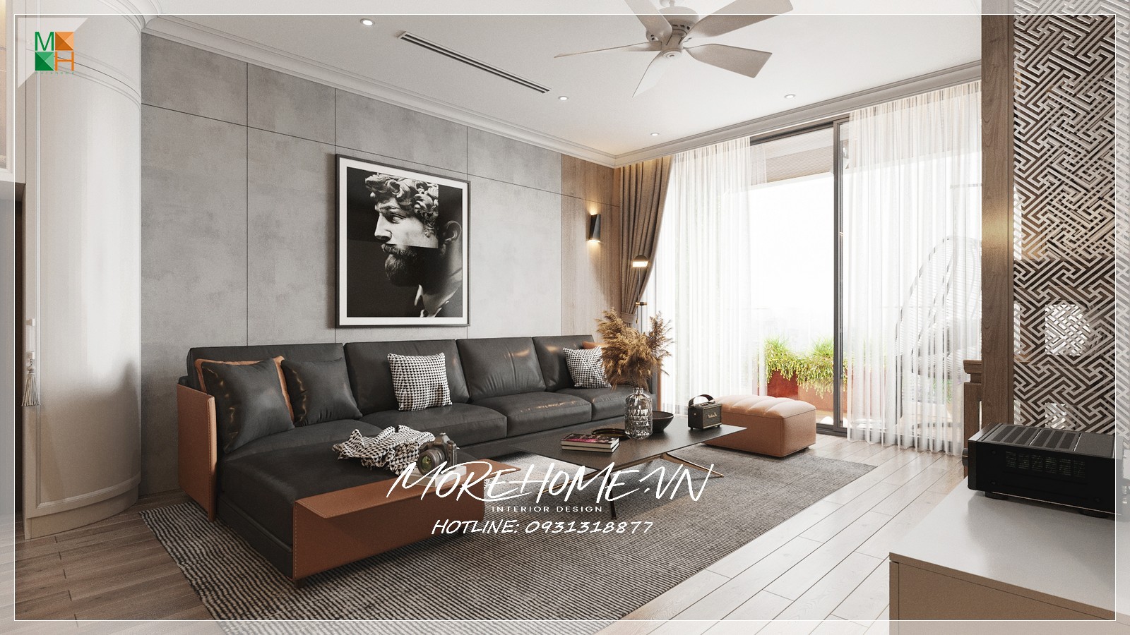 Thiết kế phòng khách chung cư hiện đại sử dụng đồ nội thất gỗ công nghiệp cao cấp mang đến sự sang trọng và đẳng cấp trong tình đường nét