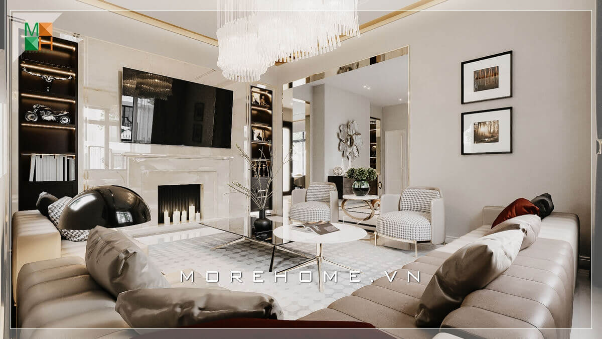 Thiết kế phòng khách biệt thự theo phong cách tân cổ điển sang trọng, đẳng cấp