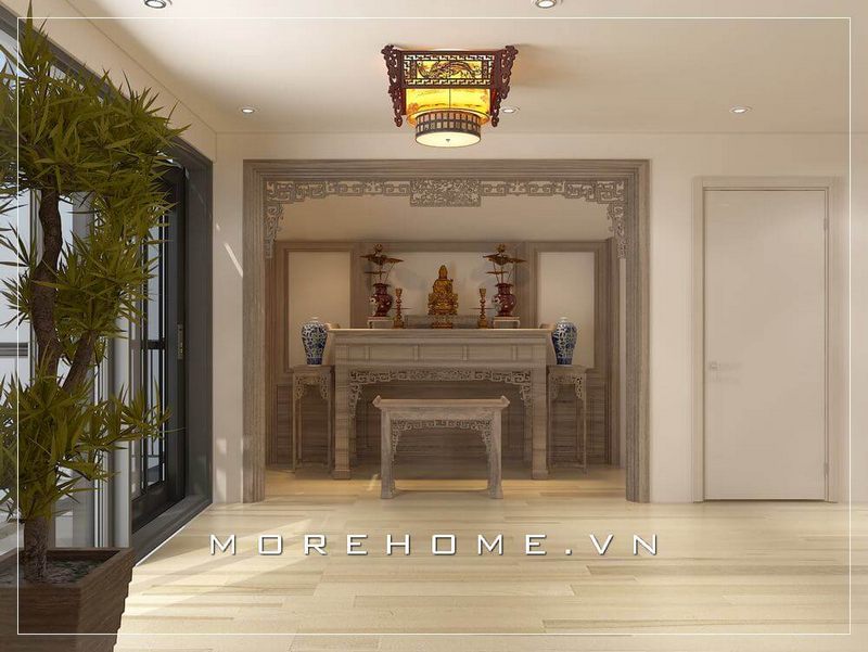 Lựa chọn bàn thờ treo tườngƯgỗ tự nhiên là giải pháp hoàn hảo đối với căn hộ có diện tích bé, sang trọng mà vẫn thành kính tới người đã khuất