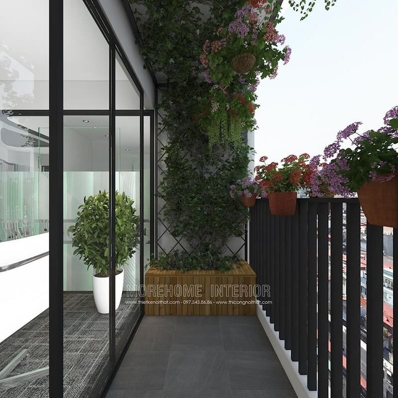 Trang trí ban công văn phòng đẹp với những chậu cây cảnh nhỏ nhắn mang đến không gian thư giãn tuyệt vời
