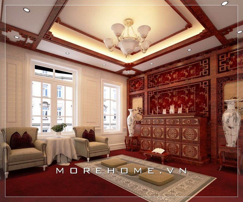 Không gian thờ cúng thanh tịnh và trang nghiêm là yếu tố cần thiết để tạo nên một căn phòng thờ cho nhà phố, sang trọng