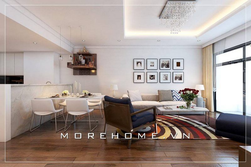 Thiết kế phòng khách liền phòng ăn hiện đại là một trong những xu hướng thiết kế được nhiều gia chủ lựa chọn tạo nên sự tiện nghi cho không gian sinh hoạt chung cư gia đình.