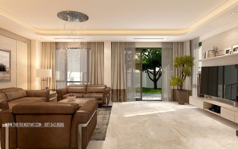 Thiết kế nội thất phòng khách đẹp với đồ nội thất hiện đại cho biệt thự, nhà phố.