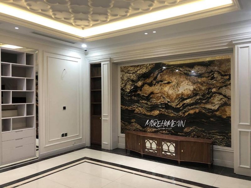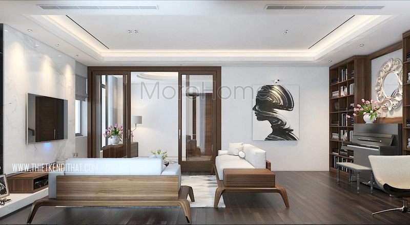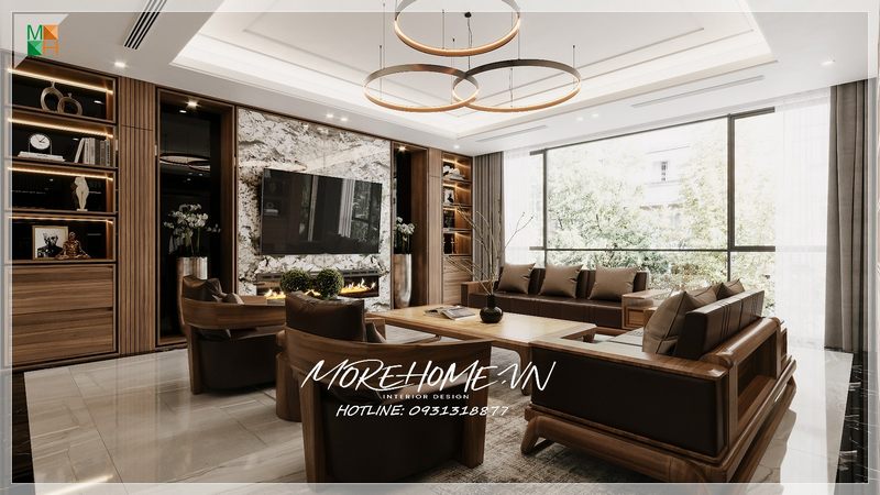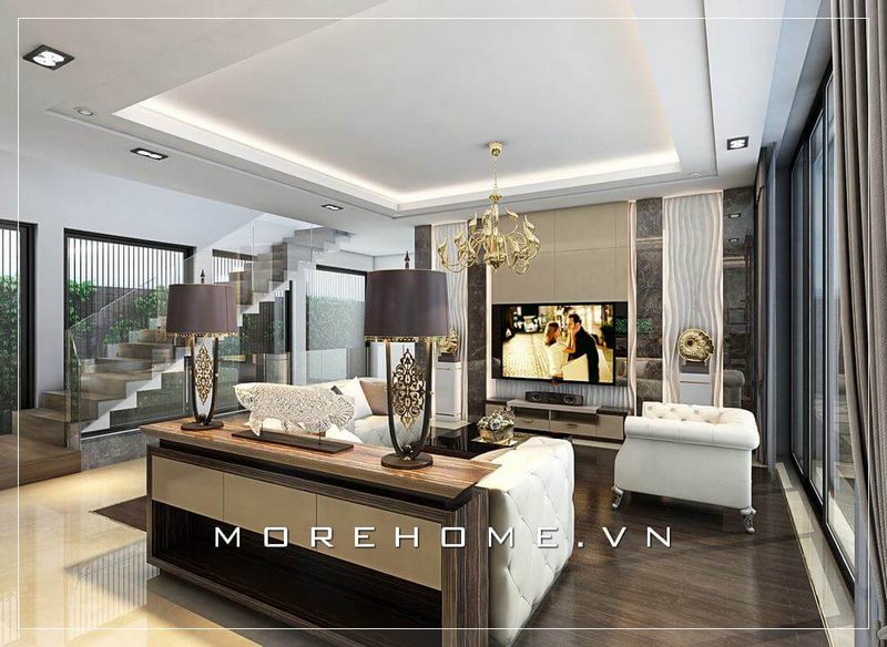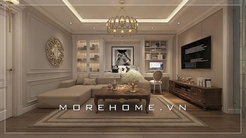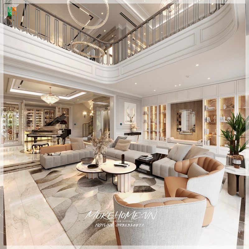 Morehome đã thực hiện việc thi công phòng khách cho biệt thự tại Hà Nội với phong cách tân cổ điển sang trọng.