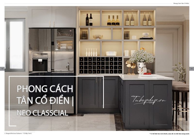 Những căn hộ chung cư cao cấp có không gian bếp liền với phòng khách thì thiết kế nội thất bếp được tập trung nhiều vào công năng, theo phong cách tân cổ điển. Xu hướng được ưa chuộng hiện nay là sử dụng tủ bếp trên kịch trần với nhiều ngăn tiện lợi.