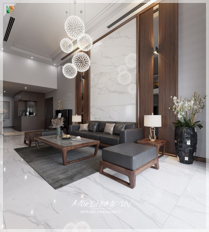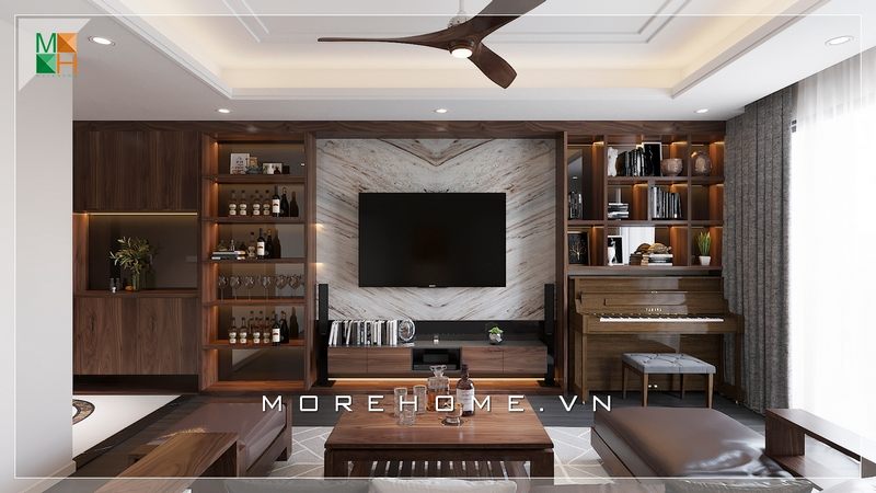 Gợi ý thiết kế nội thất phòng khách biệt thự, nhà phố cao cấp theo phong cách hiện đại mang sắc nâu trầm của gỗ óc chó xứng tầm đẳng cấp