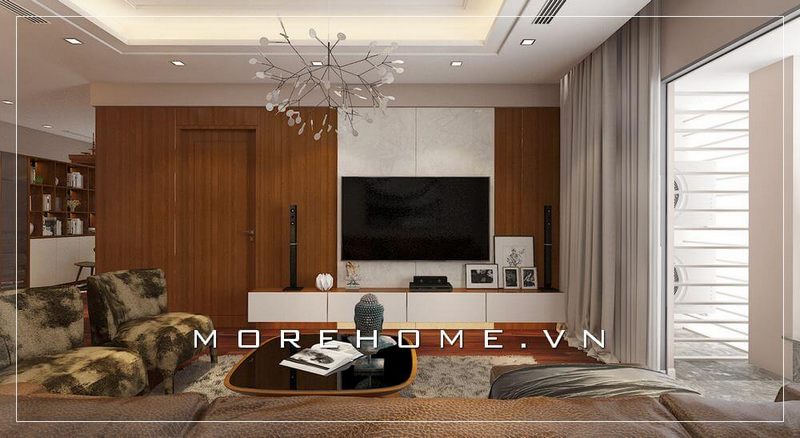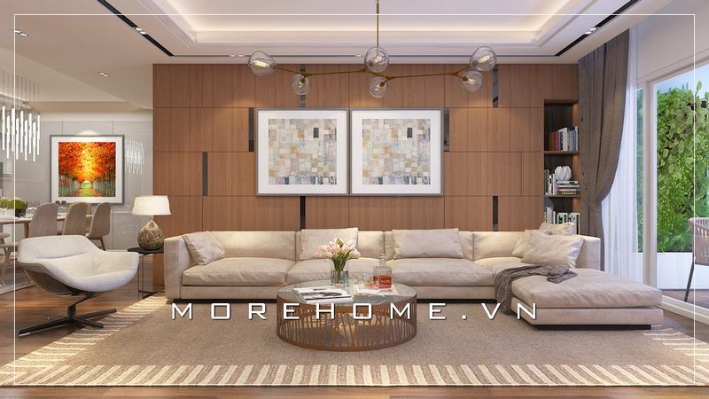 Phong cách hiện đại kết hợp nội thất gỗ óc chó đẹp, sang trọng lựa chọn ấn tượng cho các không gian phòng khách rộng cho căn hộ chung cư cao cấp