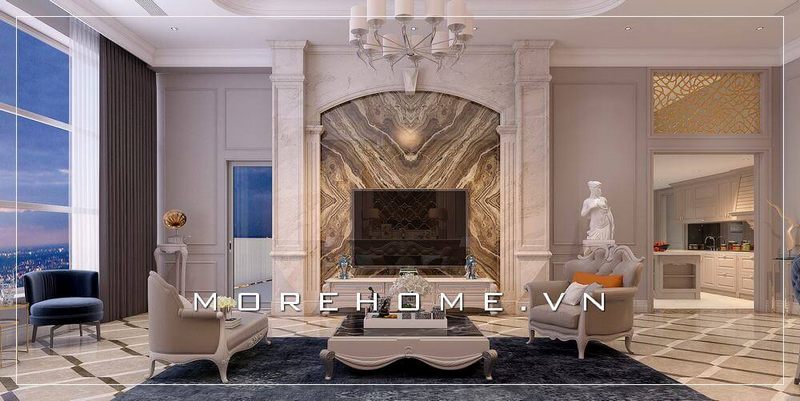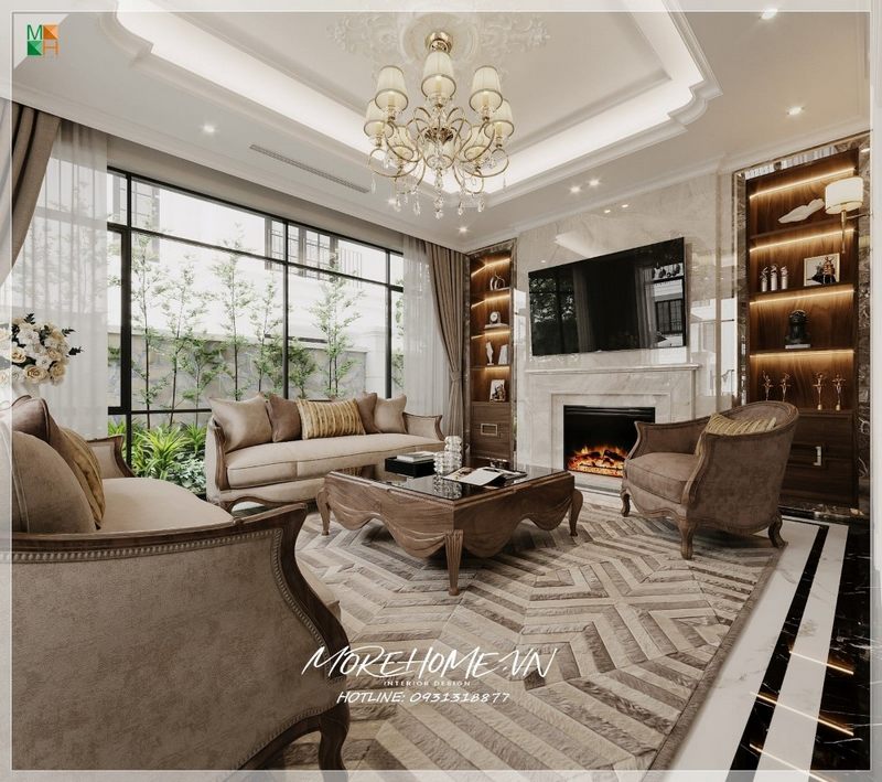 Cùng chiêm ngưỡng thiết kế phòng khách cho biệt thự phong cách sang trọng với gam màu ấm