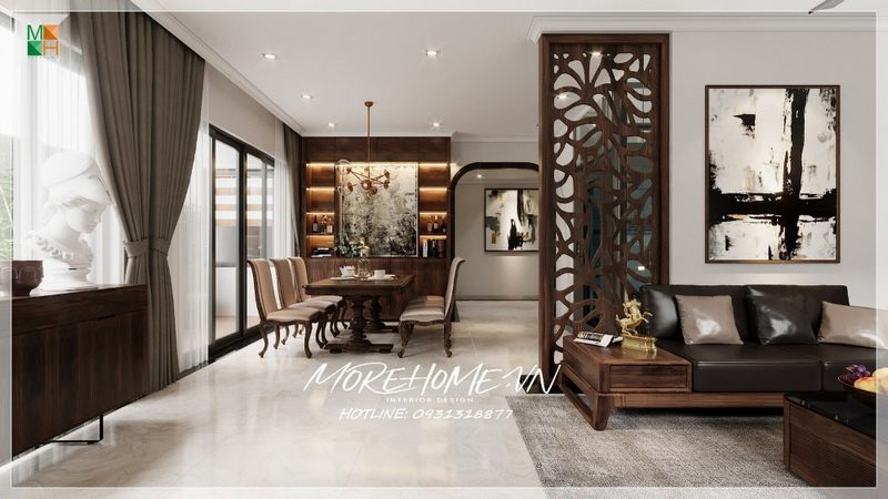 Trang trí nội thất chung cư ấn tượng với gỗ óc chó cao cấp