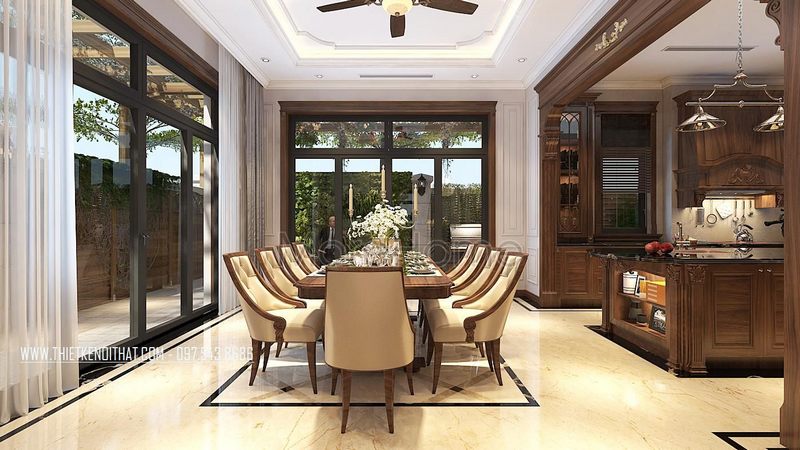 Tạo ra một không gian sống tinh tế và đẳng cấp bằng cách thiết kế một phòng bếp ăn biệt thự với đầy đủ các tiện nghi.