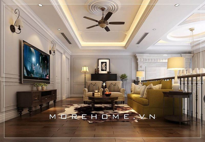Morehome đã thực hiện việc thi công trực tiếp hình ảnh sản phẩm sofa tân cổ điển bọc vải cao cấp tại phòng khách biệt thự FLC ở Thanh Hóa.